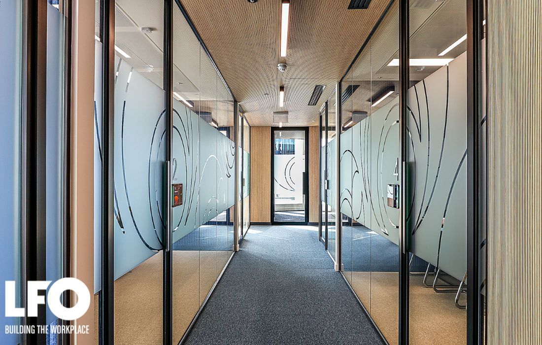 The lower floor was designed with both performance and wellbeing in mind, incorporating staff workstations, a large kitchen and breakout area off the lift lobby, additional meeting rooms, and a dedicated IT room.