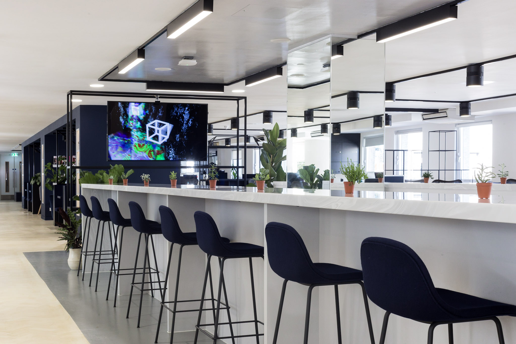 Dynamic Workspace and Cultural Hubs Across the two floors, LFO delivered a versatile mix of private offices, high-spec meeting rooms, and vibrant communal zones. The “heart” of the office is the feature tea point and breakout space, designed to foster spontaneous collaboration and provide a sophisticated area for internal events. Every element, from the bespoke joinery to the integrated lighting systems, was curated to reflect Geometry’s creative identity. The result is a workspace that doesn’t just function as an office, but as a strategic tool for attracting talent and impressing global clients.